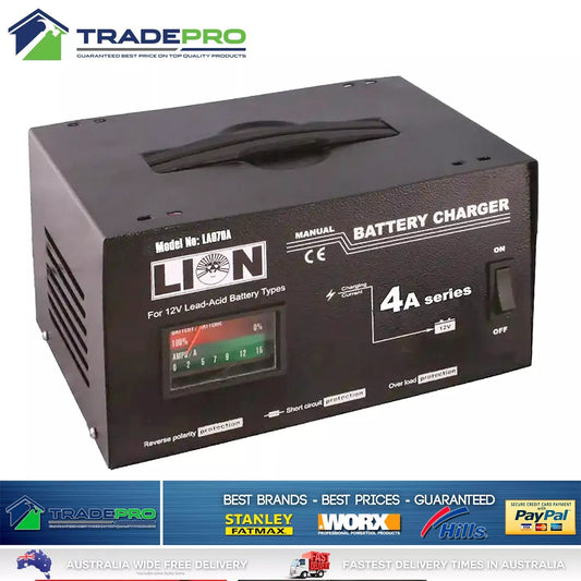Battery Charger PRO 12V 4 Amp Arlec Style Auto Car Bike Trickle Charge Lion