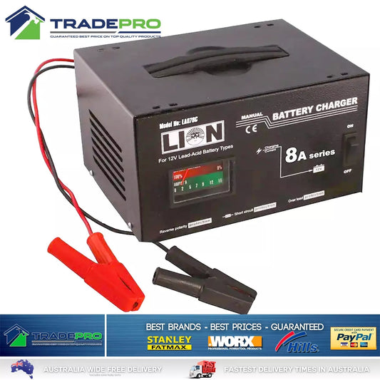 Battery Charger PRO 12V 8 Amp Arlec Style Auto Car Bike Trickle Charge Lion