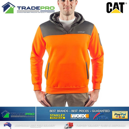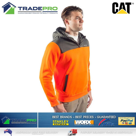 CAT Caterpillar Mens Genuine Hoodie Orange Hi-Vis 1/4 Zip Jumper Workwear Small