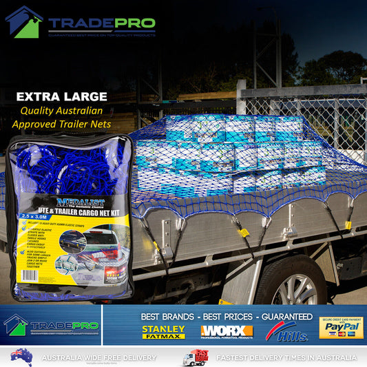 Cargo Net Ute Trailer Heavy Duty 2.5x3.0m Aust Legal with 10x H/Duty Tie Downs