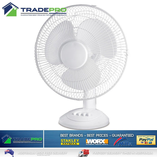 Desk Fan 30cm White 3 Speed Oscillation Floor Air Circulator Cooler PRO