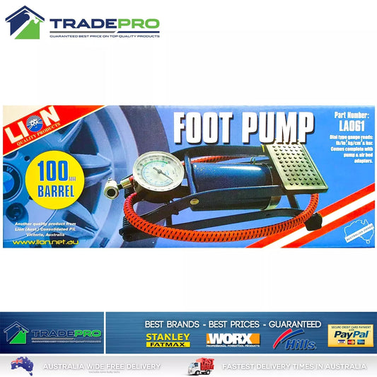 Foot Pump Tyre Inflator & Gauge 100mm Barrell Bike Car ATV Lion Air Compressor