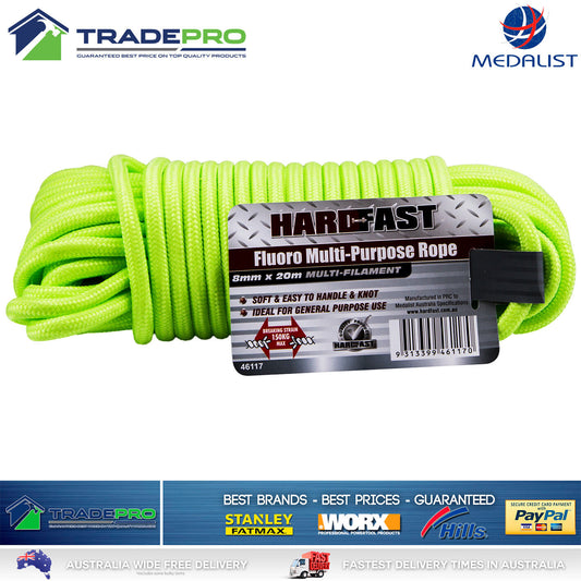 Rope 20m Multi Braided 8mm Thick HiVis All Purpose Car Boat Trailer Outdoor Cord