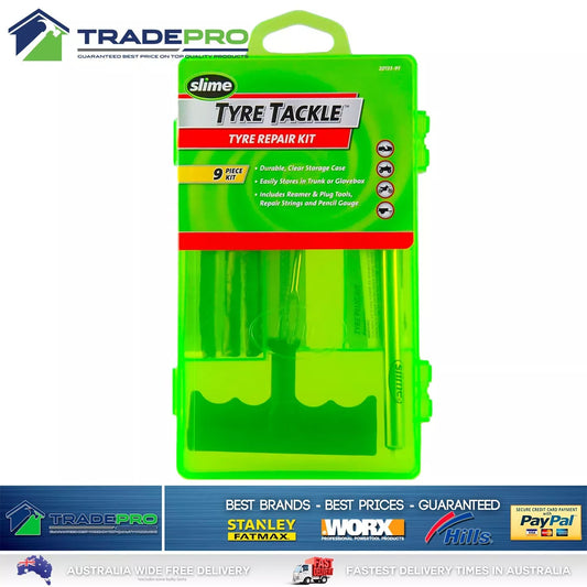 SLIME Bike Car Tyre Tire Puncture Repair Solution Kit 9pc with Gauge & Plugs PRO