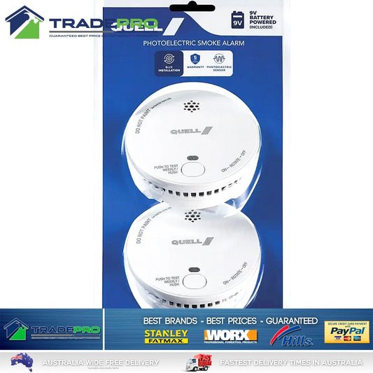 Smoke Alarm Fire Detector Twin Pack Quell® Photoelectric Intelligent 9V Kitchen