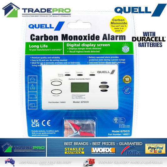 Smoke Alarm Quell PRO Carbon Monoxide Digital Long Life Detector with Batteries