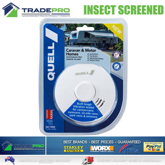 Smoke Alarm Fire Detector Quell® PRO Sealed Bug Screen Bonus 9V Caravan & RV
