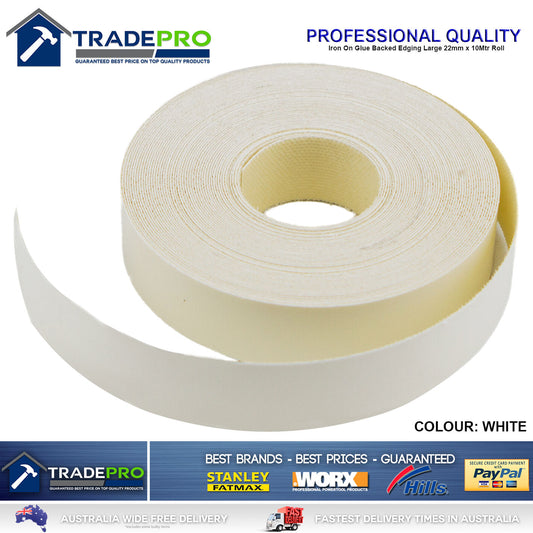 White Melamine Edge Tape 22mm x 10m ICON® Iron On Glued Veneer Edging Laminate