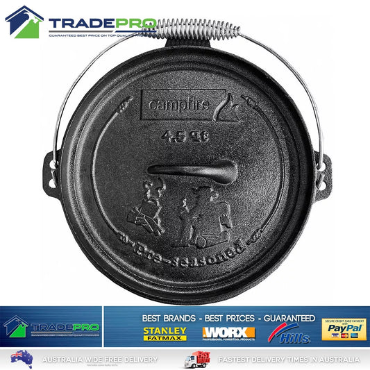 Camp Oven PRO Cast Iron 4.5 Quart Pre-Seasoned Dutch Oven Camping Fire Cooking