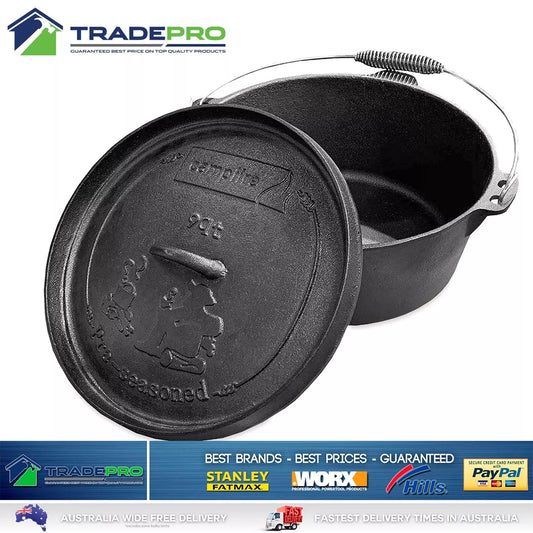 Camp Oven PRO Cast Iron 9 Quart Pre-Seasoned Dutch Oven 8.5L Camping Fire Cooking