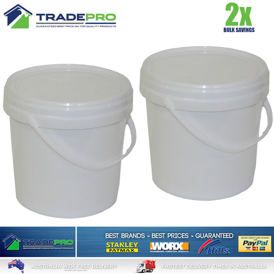 2x Quality Bucket with Lid & Handle 5Ltr H/Duty Premium Plastic Food Grade 5L