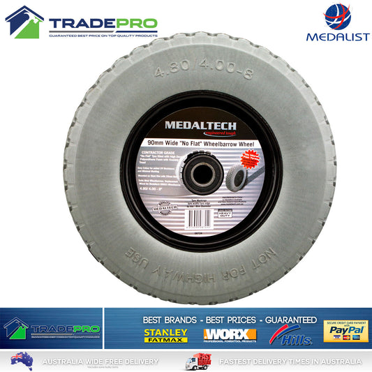 Wheelbarrow Wheel 16" x4" 90mm Wide Puncture Proof Barrow Trailer Tyre 25mm Bore