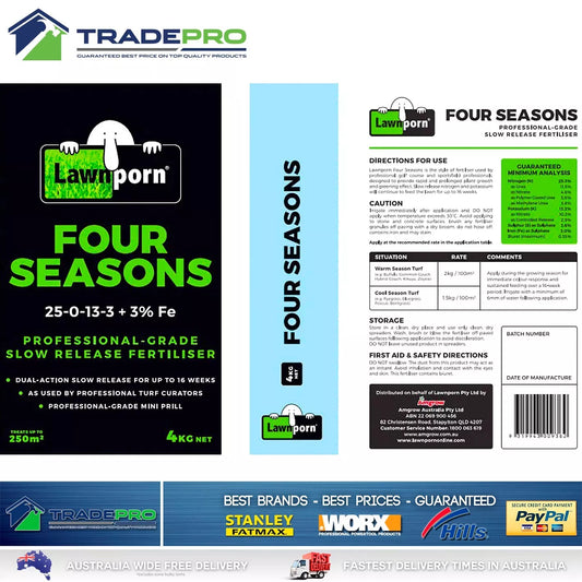 Lawnporn Four Seasons Fertiliser 4kg Granular Slow Release Lawn Turf Garden Grow