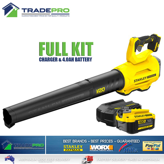 Stanley® Fatmax 18V V20 Cordless Blower Kit Leaf Grass Garden & Battery 4.0AH