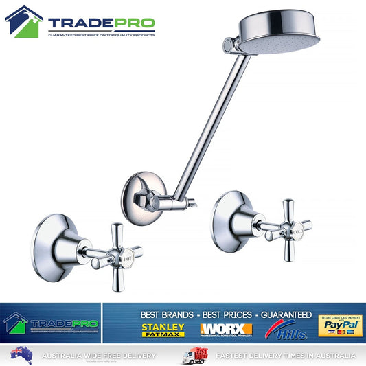Shower Head & Arm Kit with Hot Cold Handles Chrome EZYFIT Hi-Low All Directional