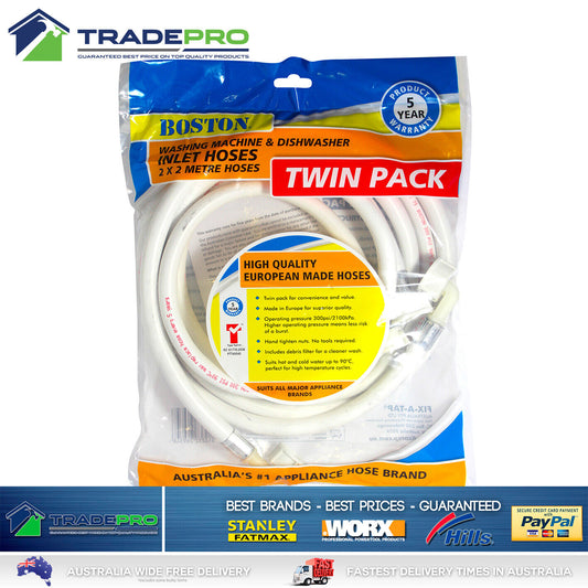 Boston® Universal Twin Pack 2pc Washing Machine Dishwasher Hose Hot Cold Water