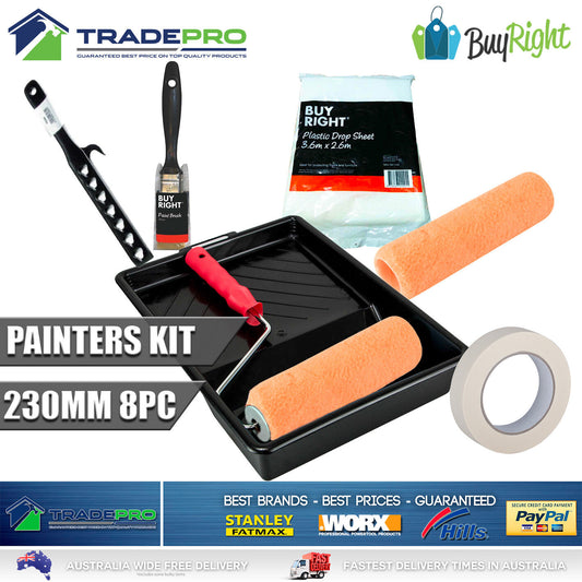 Paint Roller Kit 8pc 230mm 9" Brush Masking Tape Stirrer Roller Cover 5557897