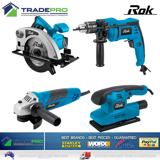 Rok Combo Kit Angle Grinder Circular Saw Electric Drill Sander Set 240V Tool