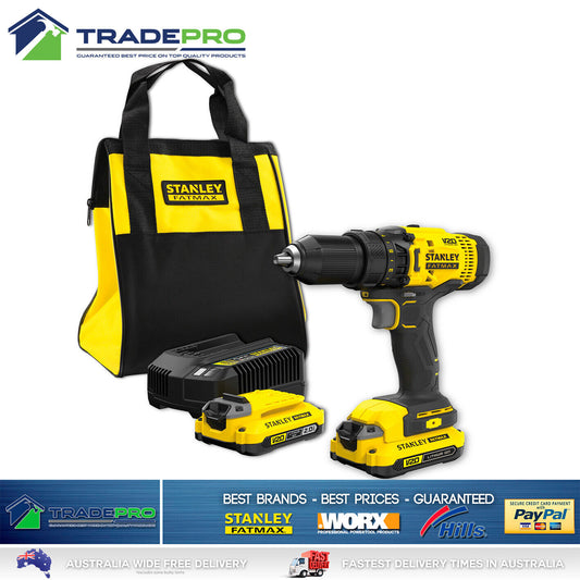 Stanley® Fatmax 18V Cordless Drill Driver V20 Kit 2x Batteries & Charger & Bag