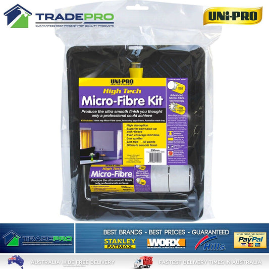 Paint Roller Kit Uni-Pro Micro-Fibre 230mm Cover & Tray Heavy Duty Set PRO
