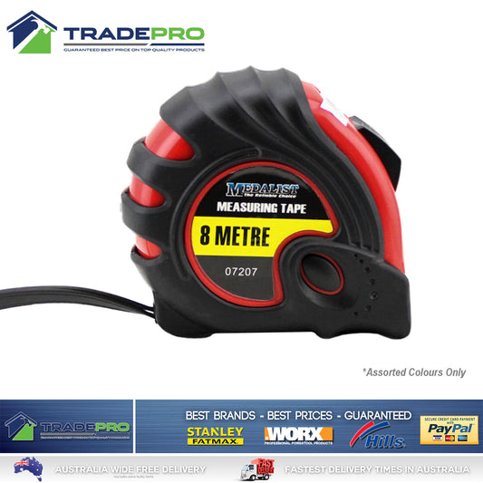 Tape Measure 8m Metric Medalist® H/Duty Rubber Grip with Blade Stop 8Mtr Metre