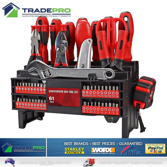Tool Set 61pc Cr-V Screwdriver Plier Tape Measure Wrench Knife Kit Workbench PRO