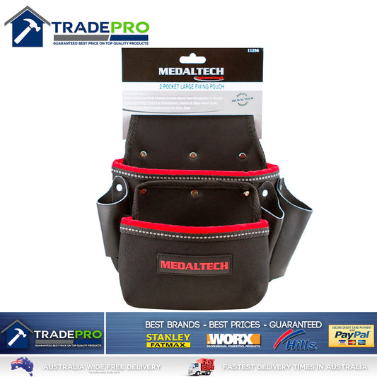 Nail Bag 2 Pocket Medaltech® Large Fixing Pouch 3 Tool Slot Riggers Apron Screws