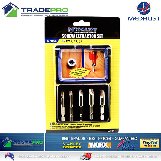Screw & Bolt Extractor Remover Industrial 5pc Ezy Out Kit H/Duty Easy Outs Set