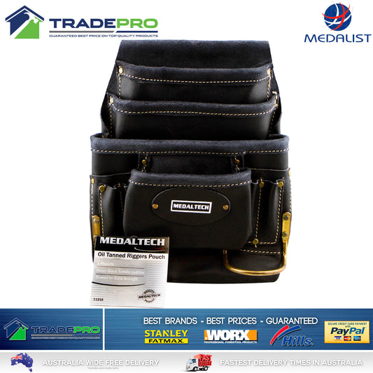 Leather Nail Bag Tool 4 Pocket Pouch Medaltech® PRO Riggers Quality Belt Hooks
