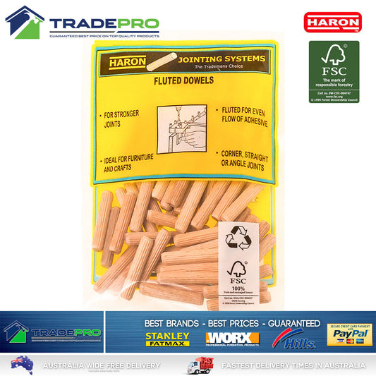 Dowels 8mm x38mm 125PC Fluted Wooden Hardwood Timber Dowel Pins Craft Cabinet