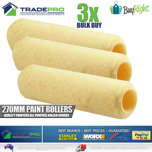 Paint Roller Cover 270mm 3pc Pack 12mm Nap Quality Water Oil Based Paint Rollers