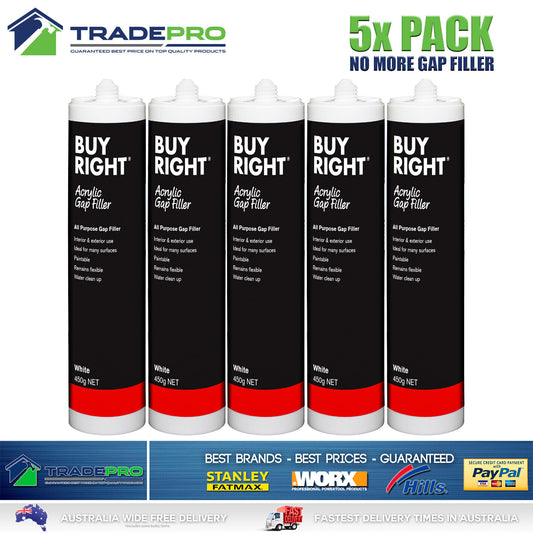 5x Gap Filler 450g White Cartridge BuyRight No More Gaps Acrylic Sealant 5pc