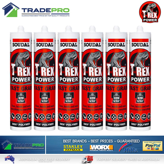 6x Soudal T-Rex Power GREY Fast Grab SMX Polymer Sealant Adhesive Glue 290ml