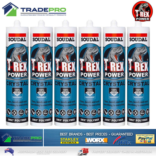 6x Soudal T-Rex Power Crystal CLEAR SMX Polymer Sealant Adhesive Glue 290ml