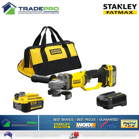Stanley® Fatmax 18V Cordless 125mm Angle Grinder 2x 4.0Ah Batteries Charger