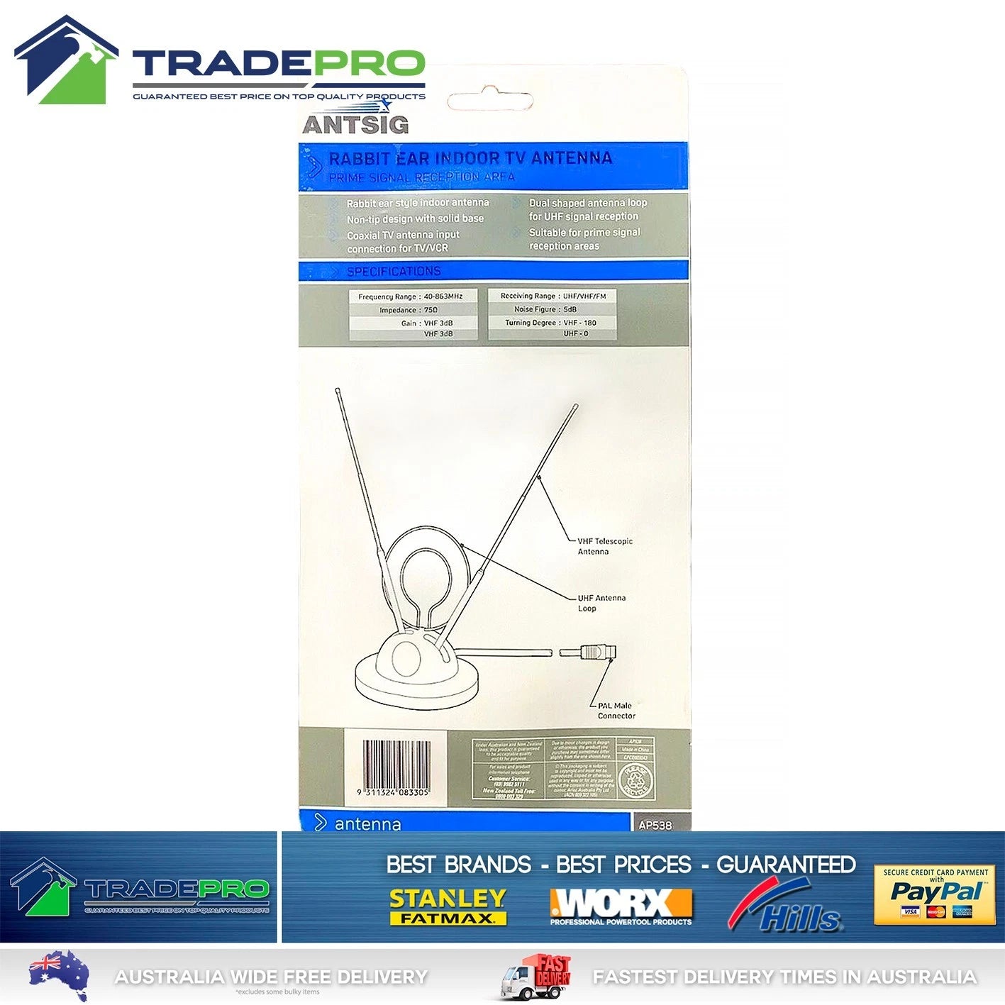 Upgrade your TV viewing experience with the Antsig Rabbit Ear Indoor TV Antenna – the perfect solution for receiving clear, high-quality free-to-air television signals without the need for an outdoor installation.