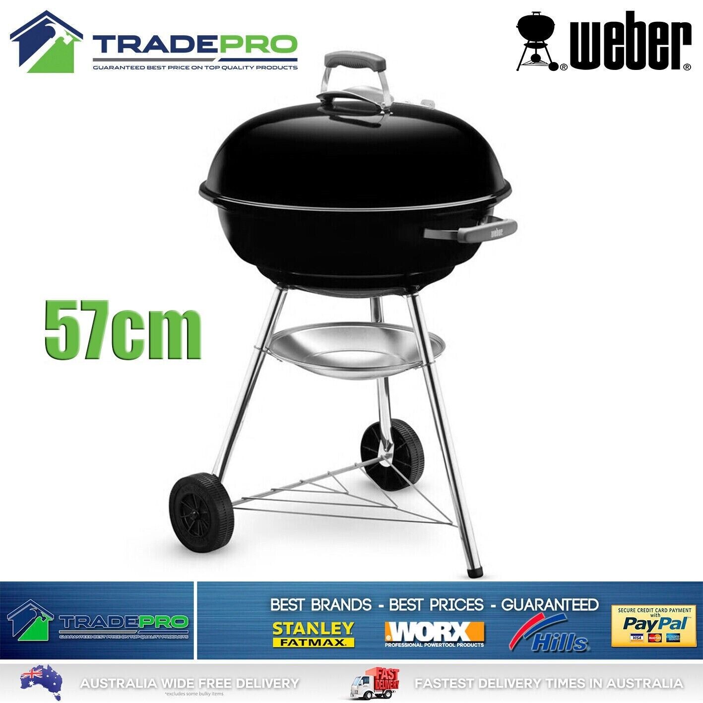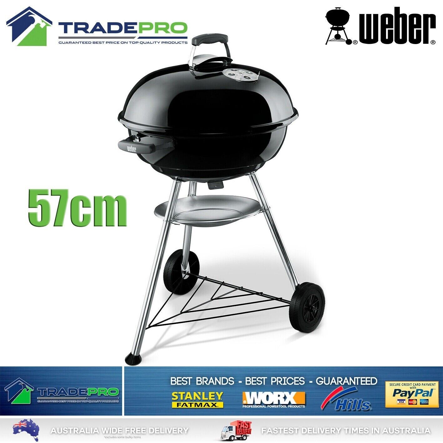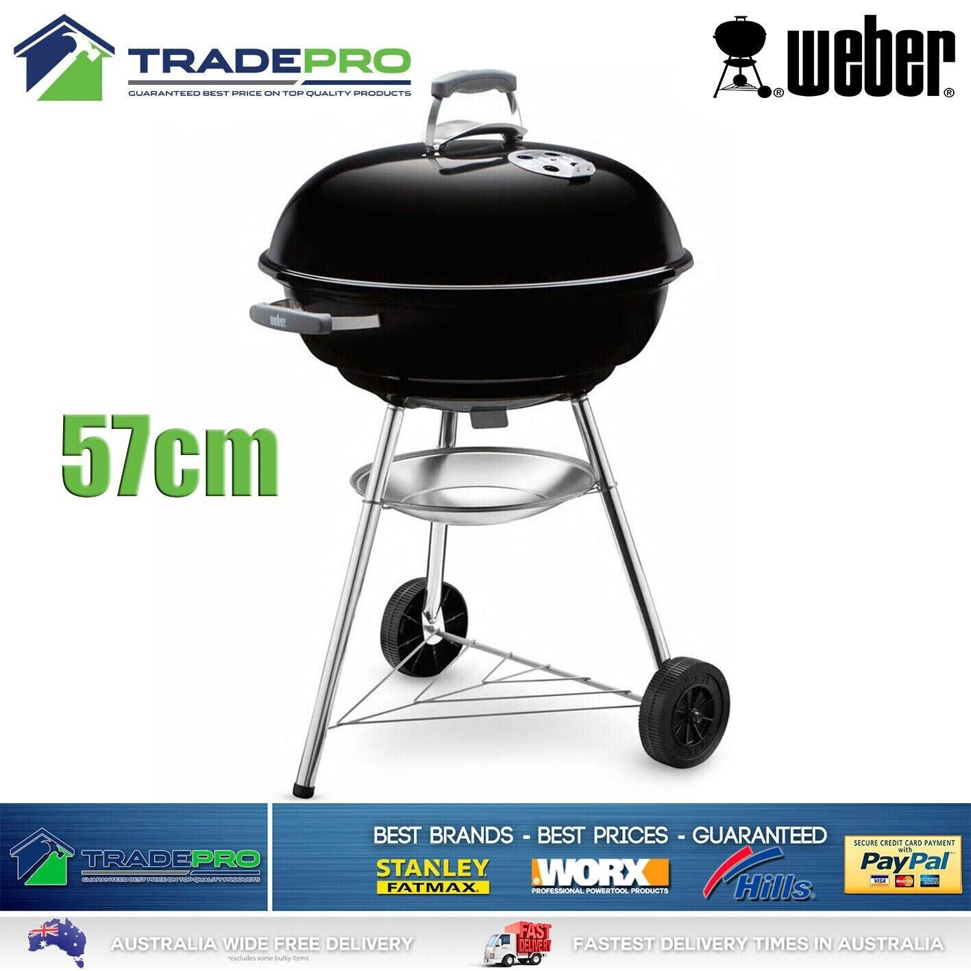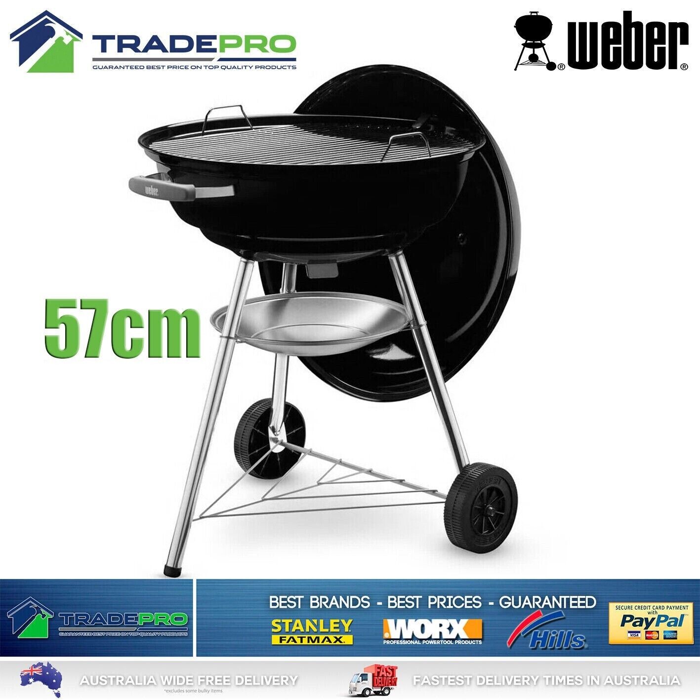 BBQ Weber Charcoal Kettle 57cm Grill with Hood &Wheels Black Barbecue Portable