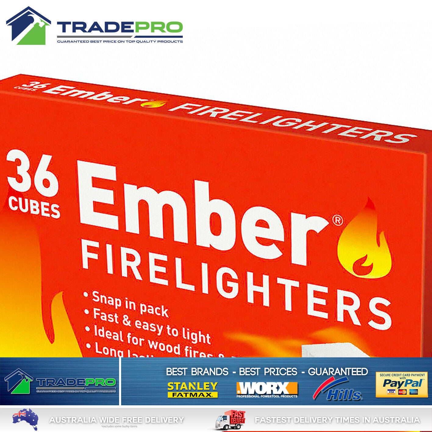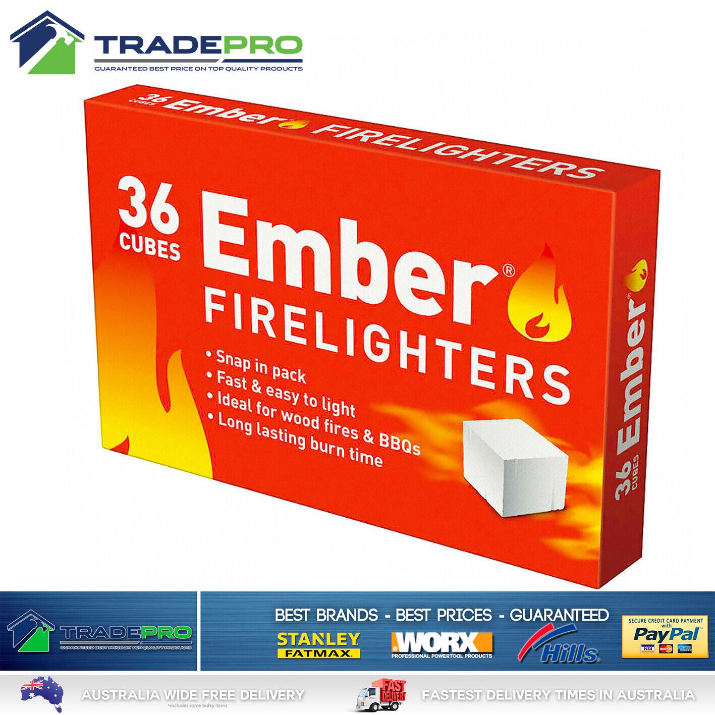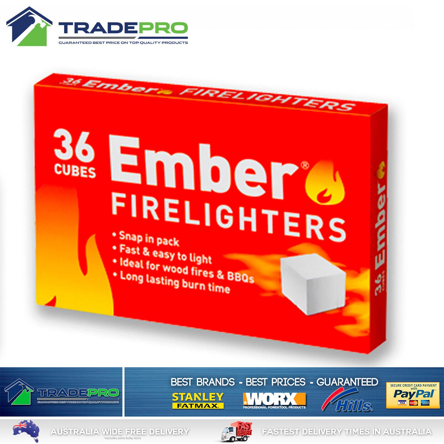 Ember Firelighters Starter Jiffy 36 Pc Low Odour Wood Fire Kindling BBQ Lighter