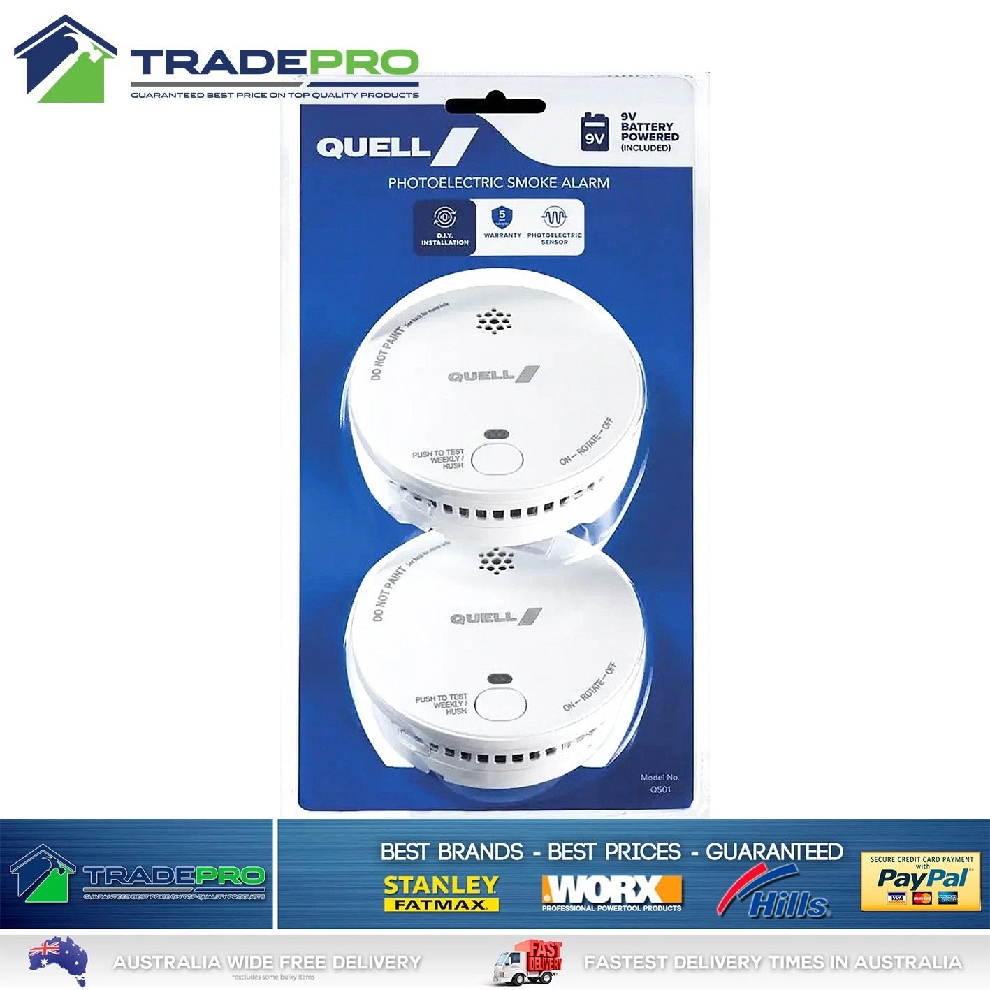 Genuine Quell® Twin Pack Smoke Alarm Fire Detector Photoelectric Intelligent 9V